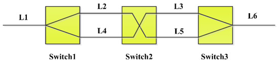 In the MI, the optical path from the optical fiber coupler to the optical fiber collimator in the sensing arm is equal to the optical path from the optical fiber coupler to the optical fiber Faraday mirror. The optical path difference (OPD) of the MI is small when the mirror is near the optical fiber collimator. In such case, the FSR is so large that it needs high bandwidth microwave photonics devices, so a programmable optical delay line was used to enlarge the OPD when the mirror is near the optical fiber collimator to decrease the FSR. The programmable optical fiber delay line is a 2-bit programmable path-switching true time delay line using switching in and out of varying length of the optical fiber by an optical switch. The setup of the 2-bit programmable optical fiber delay line is shown in Figure 2.