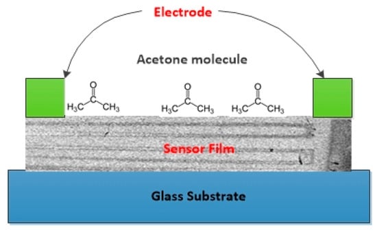 - Jamalabadi, H.; Alizadeh, N. Enhanced low-temperature response of PPy-WO3 hybrid nanocomposite based gas sensor deposited by electrospinning method for selective and sensitive acetone detection. IEEE Sens. J. 2017, 17, 2322–2328. [Google Scholar] [CrossRef]