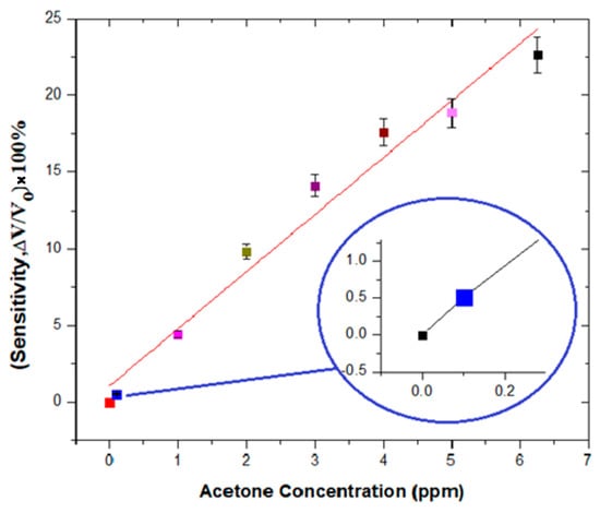 Sensitivity readings due to change in concentration of acetone for 0–6.25 ppm.