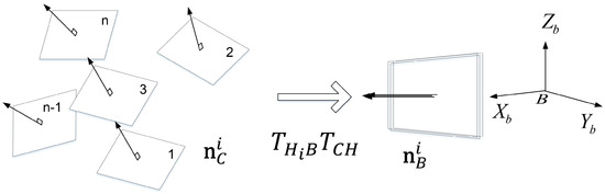 This allows all normal vectors to be coincident with each other by transforming the normal vector of each plane associated with different views to the same coordinate system.