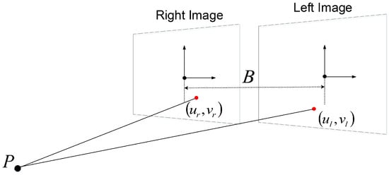 where B is the baseline between the left and right cameras and f is the camera focal length.