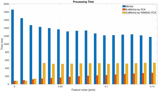 Experimental results using synthetic data with feature noise [0–0.15 pixel]: Processing time during calibration.