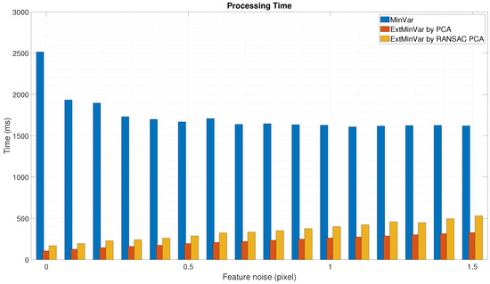 Experimental results using synthetic data with feature noise [0–1.5 pixel]: Processing time during calibration).