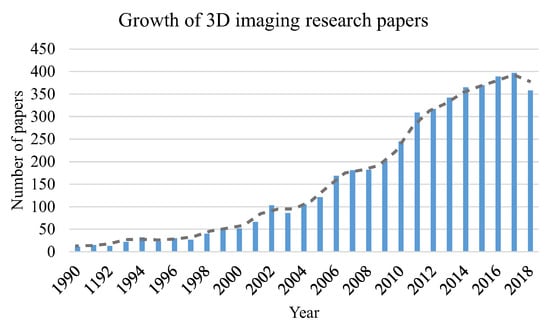 Number of papers with a title containing “3D imaging” in Google Scholar during the past decades.