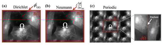 Transport of intensity equation is a second order elliptic partial differential equation for the phase function, and solving this equation does not appear to be difficult. Supposing within enclosure and with appropriate boundary conditions (defined on the region boundary ), the solution to the TIE is known to exist and be unique (or unique apart from an arbitrary additive constant) [80], i.e., the phase can be uniquely determined by solving the TIE with the measured intensity and the axial intensity derivative . The TIE is conventionally solved under the so-called “Teague’s assumption” so that the transverse flux is conservative and can be fully characterized by a scalar potential (an auxiliary function):