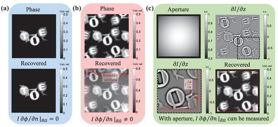 - Martinez-Carranza, J.; Falaggis, K.; Kozacki, T.; Kujawinska, M. Effect of imposed boundary conditions on the accuracy of transport of intensity equation based solvers. In Proceedings of the Modeling Aspects in Optical Metrology IV, Munich, Germany, 13 May 2013; p. 87890N. [Google Scholar] [CrossRef]