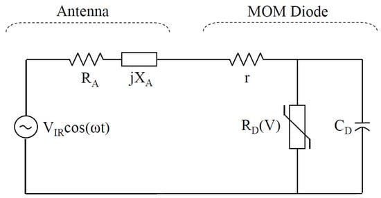 Equivalent-circuit model of an antenna-coupled MOM diode.