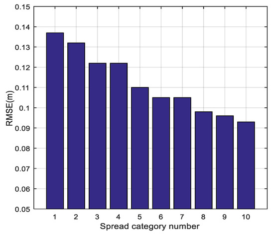 where is the maximum distance–weight in set W and μw is the mean. As the distance–weights data are regularized by the max–min method, we can obtain . The interval of one category is given as Δ = β × μ. The parameter β is an intermediate variable introduced to control the quantity of spreads. As μ is the normalized mean value of distance–weight calculated by Equation (12), β can be considered as a zoom factor to ensure that the value of Δ is within a reasonable range. The kernels in each interval form one category and share the same spread value. It is possible that some categories are null and no kernel falls into those intervals. Thus, the actual number of spread categories is likely to be less than C.