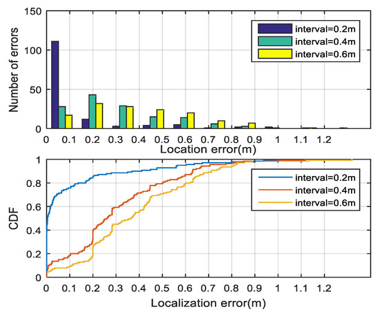 The spread quantity and the corresponding distribution are very flexible by tuning Δ, according to the requirement of the fitting performance. Figure 5 depicts the dynamic partition of the given fingerprint set under different Δs, where different categories are distinguished by colors. The distribution of the color blocks is in accordance with our hypothesis that adjacent fingerprints have similar distance–weights.