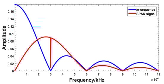 Spectrums of m-sequence and BPSK signal.
