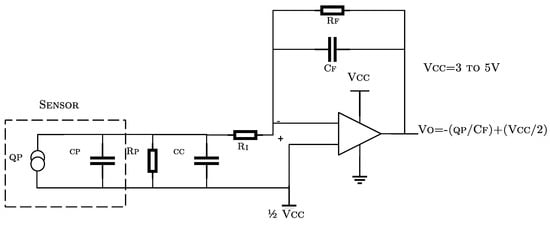 - Karki, J. Signal conditioning piezoelectric sensors. Application Report on Mixed Signal Products (SLOA033A); Texas Instruments: Dallas, TX, USA, 2000. [Google Scholar]
