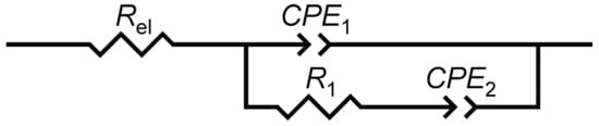 The EIS measurements were performed at the open circuit potential (OCP) with an ac voltage amplitude of ±10 mV in the frequency range from 100 kHz to 0.05 Hz. Measurements were carried out using a Solartron SI 1287 electrochemical interface and a Solartron SI 1255 frequency response analyzer. The EIS data were fitted using the complex non-linear least squares fit analysis by Zview software (Ametek, Berwyn, PA, USA). The numerical values of impedance parameters were determined with a standard deviation χ2 of the order of 10−5, and the relative error of each element was less than 5%. An electrochemical cell with three electrodes was used with Radiometer XR300 Ag/AgCl 3 M electrode as reference electrode, Pt plate as auxiliary and pressed electrodes as working electrodes.