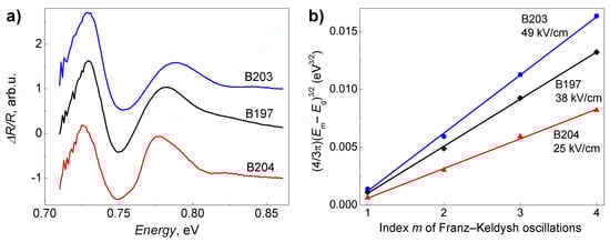 - Shen, H.; Dutta, M. Franz-Keldysh oscillations in modulation spectroscopy. J. Appl. Phys. 1995, 78, 2151–2176. [Google Scholar] [CrossRef]