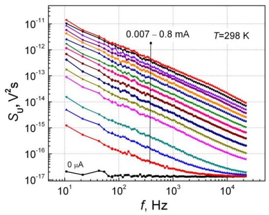 - Palenskis, V.; Maknys, K. Nature of low frequency noise in homogeneous semiconductors. Sci. Rep. 2015, 5, 18305. [Google Scholar] [CrossRef] [PubMed]