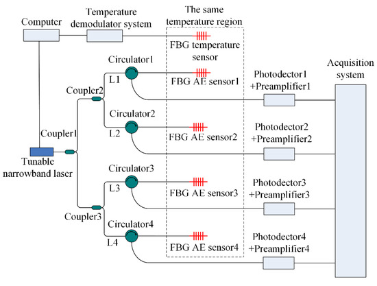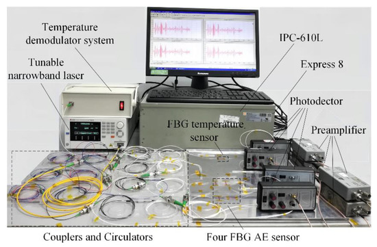 - Perez, I.M.; Cui, H.L.; Udd, E. Acoustic emission detection using fiber Bragg gratings. In Proceedings of the SPIE—Smart Structures and Materials, Newport Beach, CA, USA, 6 August 2001; Volume 4328, pp. 209–235. [Google Scholar]