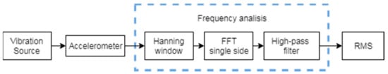 Vibration measurement system (frequency domain analysis). FFT, fast Fourier transform; RMS, root mean square value.