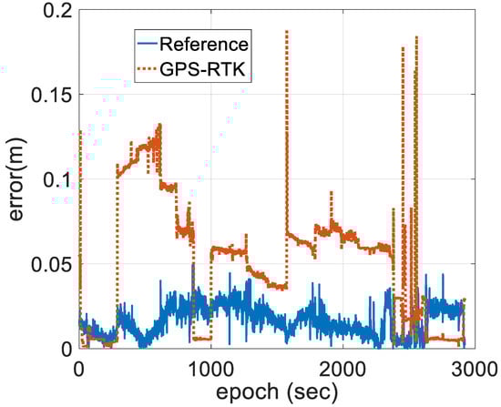 Position state estimate error of the referenced and GPS-RTK.