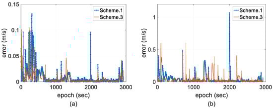 Comparisons of velocity error. (a) Horizontal; and (b) vertical.