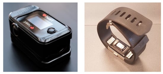 This figure shows the finger-tip (iHeart) sensor on the left and the wrist (Fitbit Charge 2) sensor on the right Image source: [].