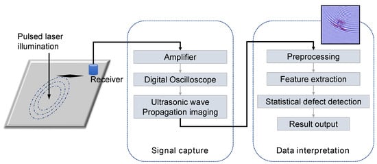 - Yashiro, S.; Takatsubo, J.; Miyauchi, H.; Toyama, N. A novel technique for visualizing ultrasonic waves in general solid media by pulsed laser scan. NDT E Int. 2008, 41, 137–144. [Google Scholar] [CrossRef]
