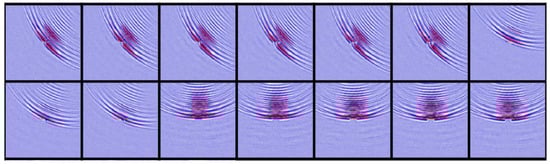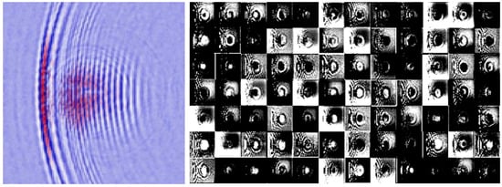 Finally, we investigate the activation of intermediate layers in the USresNet. Deep learning systems usually consist of billions of weights, and they are well structured to detect specific patterns from image pixels. Activation visualization is a useful approach to interpret the convolution neural networks by exploiting what the neuron “is looking for” [37]. If the pattern appearing in the image is sensitive to the neural network, high activation scores will be generated. We present a demonstration in Figure 14, including both input image and the corresponding activation at the B4 layer of USresNet. It is evident that the flaw-induced round-shape echoes generated high activation scores while, on the contrary, the ultrasonic wave propagation mode was suppressed. The visualization confirms that the USresNet establishes very effective visual pattern analysis pipeline for defect detection in ultrasonic images.