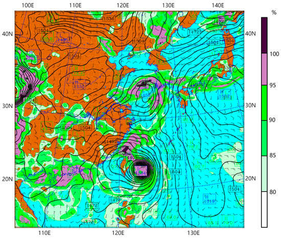 Relative humidity and potential height of the MALAKAS typhoon with the pressure at 850 hPa layer at 02:00 on 17 September.