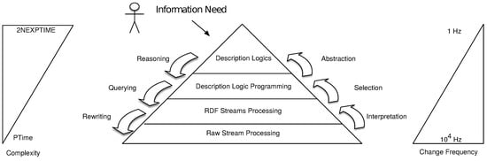 - Della Valle, E.; Dell’Aglio, D.; Margara, A. Taming velocity and variety simultaneously in big data with stream reasoning: Tutorial. In Proceedings of the 10th ACM International Conference on Distributed and Event-Based Systems, Irvine, CA, USA, 20–24 June 2016; ACM: New York, NY, USA, 2016. [Google Scholar]
