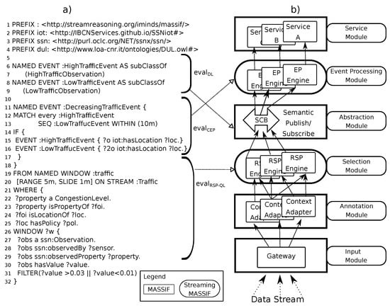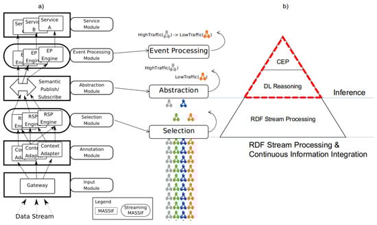 - Anicic, D.; Fodor, P.; Rudolph, S.; Stojanovic, N. EP-SPARQL: A unified language for event processing and stream reasoning. In Proceedings of the 20th International Conference on World Wide, Hyderabad, India, 28 March–1 April 2011; pp. 635–644. [Google Scholar]
