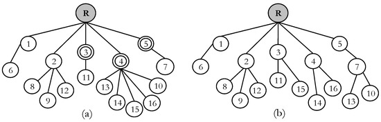 Destination oriented directed acyclic graph (DODAG) topology in RPL: (a) Parent selection problem; and (b) Topology construction based on the proposed scheme.