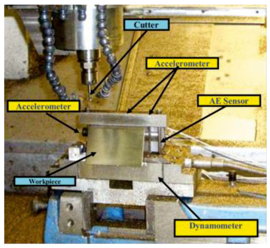 Milling is a very common and efficient cutting operation that uses a rotary milling cutter with one or more teeth to intermittently cut workpieces into flat surfaces, grooves, threads, and many complex geometric components. Highly efficient milling processes are suitable for mass production and have been used widely in the manufacturing industry. Tools are considered the pillars of the milling process [1], and tool breakage is a major cause of unscheduled stops in a machining environment. Tool breakage has negative direct (capital) and indirect (time loss) effects. The downtime of a milling machine due to tool failure accounts for 7–20% of total downtime [2,3], and the cost of tools and tool changes account for 3–12% of the total processing cost [4]. As the conditions of tools vary over time, the timeliness of detecting tool damage is critical, and it requires an appropriate tool replacement strategy. Conventionally, tool change strategies are subjective and regular and the time period is determined by the experience of the operator. While early replacement of a workable tool will waste tools and increase downtime, late replacement of a worn tool will result in lower quality workpieces and increased production costs [5]. Research [6,7] has determined that tools are typically only used for 50–80% of their effective lifespan. Thus, tool condition monitoring (TCM) has become an important challenge in the milling processes that schedules activities based on the result of condition measurements without interrupting normal machine operations [8]. TCM systems are developed in order to generate better surface quality and to extend tool life by diagnosing cutting tool deficiencies with appropriate signal processing and pattern recognition techniques, thereby reducing losses due to tool wear or failure. An accurate and reliable TCM system can reduce costs by 10–40% by reducing downtime and fully utilizing tools [7,9].
