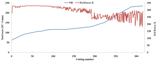 The scatter diagram between Fcf in X-dimension Force and tool wear value.