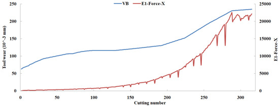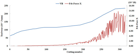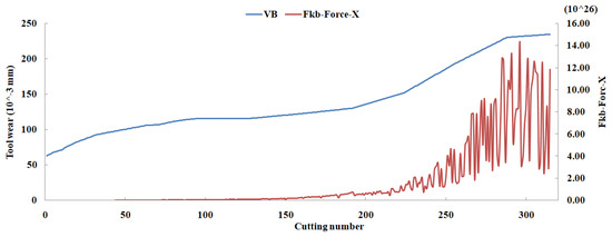 The scatter diagram between Fsb in X-dimension Force and tool wear value.