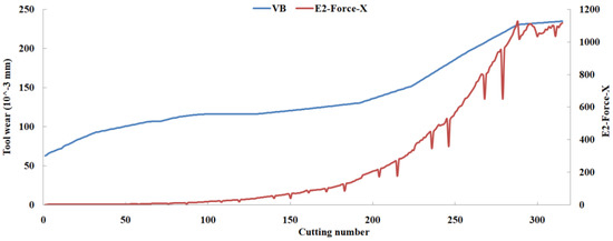 - Stavropoulos, P.; Papacharalampopoulos, A.; Vasiliadis, E.; Chryssolouris, G. Tool wear predictability estimation in milling based on multi-sensorial data. Int. J. Adv. Manuf. Technol. 2016, 82, 509–521. [Google Scholar] [CrossRef]