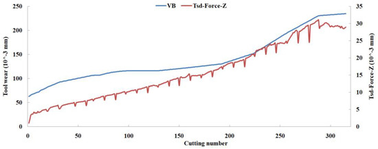 The scatter diagram between Tsd in Z-dimension Force and tool wear value.