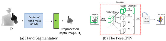 - Oberweger, M.; Wohlhart, P.; Lepetit, V. Training a feedback loop for hand pose estimation. In Proceedings of the IEEE International Conference on Computer Vision, Santiago, Chile, 7–13 December 2015; pp. 3316–3324. [Google Scholar]