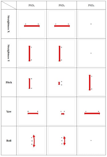 29. Gao, S.; Zhang, B.; Feng, Q.; Cui, C.; Chen, S.; Zhao, Y. Errors crosstalk analysis and compensation in the simultaneous measuring system for five-degree-of-freedom geometric error. Appl. Opt. 2015, 54, 458–466. [Google Scholar] [CrossRef]