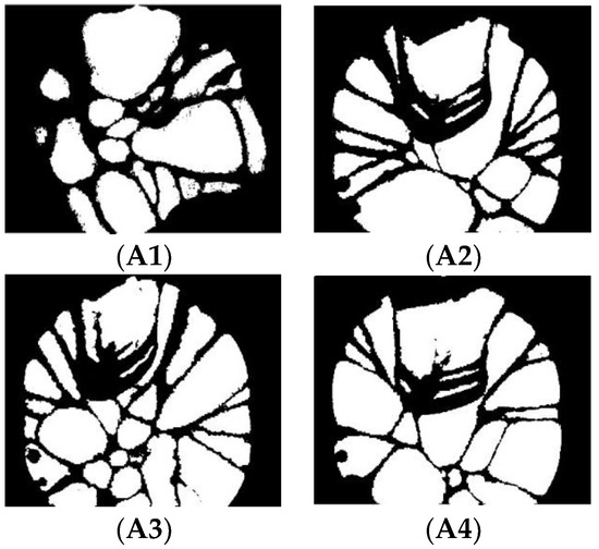 (A1–A4) are segmented images of a–d obtained by Otsu-based DPSO method.