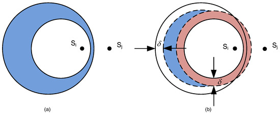 Suppose that we give the same value of location margin to decrease the radii of capture circle and increase the radii of ICD circle, then, if the minimum width of the ICD region is less than as in Figure 6a, we will get a real crescent region for optimized GW locations.