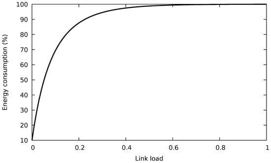We will consider a link aggregate composed of L IEEE 802.3az links, of identical capacity C. The traffic traversing that bundle is represented by F flows. Let denote the estimated rate of flow i, and let be the port where that flow is allocated. According to [25], the normalized individual energy consumption of a single EEE interface for any uncorrelated incoming traffic distribution is: