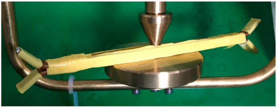 To check the influence of actual wire grooving on insulation, an inter-turn power frequency voltage breakdown test is conducted on the wire before and after grooving. Three layers of insulation paper are added between the wires (Figure 4). The power frequency voltage breakdown test is conducted on the wire before and after grooving and the mean value of ten test results is taken. The test shows that the mean values of power frequency breakdown voltage before and after wire grooving are 6.82 kV and 6.75 kV, respectively, the breakdown positions are all at the edge of the wire and there is no breakdown at the groove. Therefore, it can be considered that the grooving of the wide side of the wire has no influence on winding insulation performance.