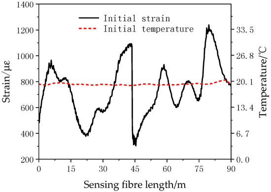 BOTDR technology uses a single mode fibre as the sensing element. Due to differences in the optical fibre material and process, the performance parameters of the single-mode tightly buffered optical fibres from different manufacturers, modes, and sheathing materials are different. Therefore, temperature calibration and strain calibration tests have to be conducted. Multiple calibration tests have been conducted for the single mode optical fibre used here: the temperature and strain coefficients obtained are 1.32 MHz/°C and 0.0528 MHz/με respectively.