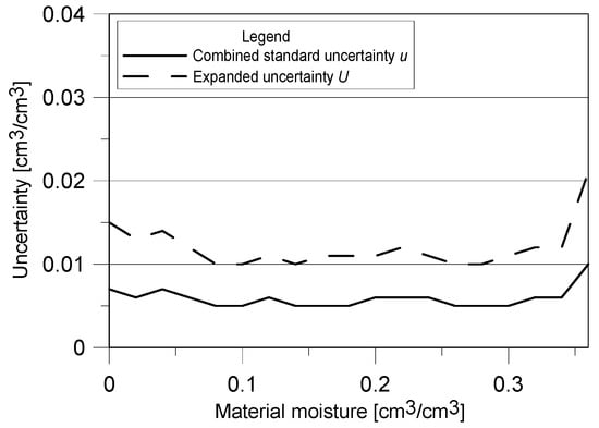 - Expanded uncertainty of the tested sensor is higher at nearly dry and nearly saturated states of the measured material.