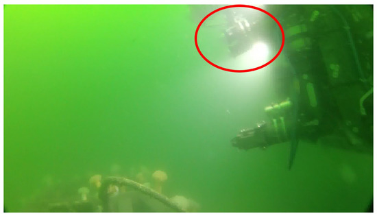 The algorithm described in Section 3 has been tested using a stereo RGB camera rig. It consists of a pair of FLIR (formerly Point Grey) Blackfly GigE Vision cameras (BFLY-PGE-23S6C-C), with global shutter Sony IMX249 1/1.2” CMOS sensors. These are standard industrial machine vision cameras enclosed in underwater housings rated to a water depth of 1000 m. The camera and the housing can be seen in Figure 2. The stereo rig was mounted on the front of two ROVs, as shown in Figure 3 and Figure 4. The shutters are synchronised through the cameras’ GPIO (General-Purpose Input/Output) pins as described in [50], where one camera emits a signal that triggers the second one, without the need of an external signal generator. This is necessary in order to accurately estimate disparities from a stereo image when motion is involved.