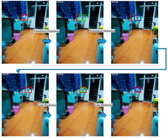 | 1: Detected target position and scale in current frame. 2: Predicted target position and scale subsequent frame. |