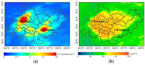 The Chengdu–Chongqing Economic Zone (CCEZ) is the fourth largest economic region in China after the Pearl River Delta, the Yangtze River Delta, and the Beijing–Tianjin–Hebei region. The rapid economic development in the CCEZ has resulted in many environmental problems [1], including air pollution. Two important constituents of air pollution are nitrogen oxides (NOx = NO + NO2) and particulate matter with an aerodynamic diameter of less than 2.5 µm (PM2.5), both of which can inflict substantial harm to human health [2,3]. Studies have shown that high levels of NO2 in the air increase the risk of respiratory infections and lung damage [4]. In addition, NO2 constitutes one of the main factors that leads to the formation of acid rain photochemical smog and causes climate change; accordingly, NO2 considerably damages the atmospheric ecological environment [5]. PM2.5 particles are so small that they can reach the alveoli directly and penetrate into the bloodstream. Hence, long-term exposure to PM2.5 can lead to bronchitis and cardiovascular diseases [6]. In addition to affecting human health, PM2.5 is the primary cause of urban haze conditions [7].