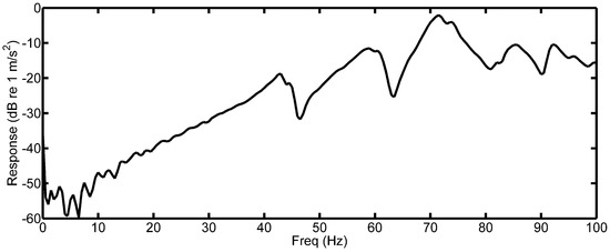 The response measured during the impact test of the supporting plate is shown in Figure 9. It is clear that the response of the plate increases with excitation frequency. This suggests that higher order BPF and PPF excitation will result in a larger response from the strain gauge when compared to the PVDF measurement.