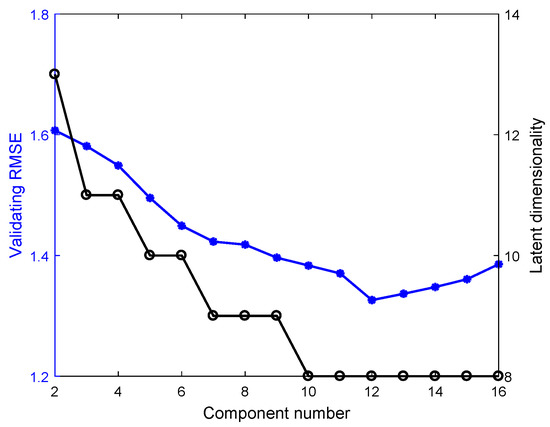 The validating RMSE and latent dimensionality based on Multi-DPLS.