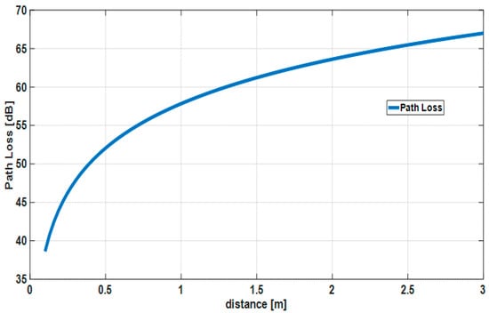Here, and are linear fitting coefficients, is the communication distance (millimeter, mm) between a transmitter and a receiver, and is a normally distributed variable with zero mean and standard deviation . Details about these parameters can be found in the literature []. Using , the signal to noise ratio (SNR) at a receiver can be expressed as follows: