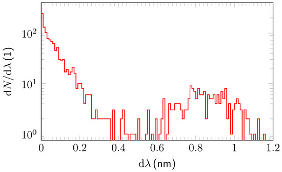 The simulation of the admixtures was based on the existing spectra published in HITRAN which were folded with the quantitative benchmarks obtained for the PAS spectrometer as derived in Section 3. In detail, we selected at first N different wavelengths in the surveyed region as reference. Simulations were undertaken for and , the latter representing a doubling of the wavelength resolution in the current experiment. This was done by randomly choosing a minimal value for before subsequently generating additional wavelengths by adding values of .