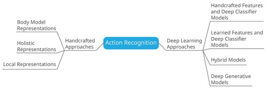 With the advent of deep learning approaches that enable the learning of features along with the classification of them, we have seen the application of these in the field of action recognition with considerable success. In particular, convolutional neural networks have revolutionized the field of image classification and recognition [77,78,79,80] and are employed singularly or in conjunction with other architectures for action recognition tasks.